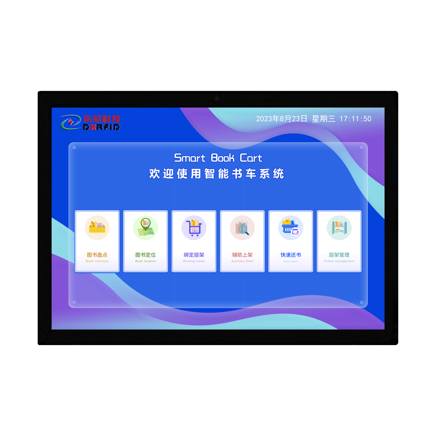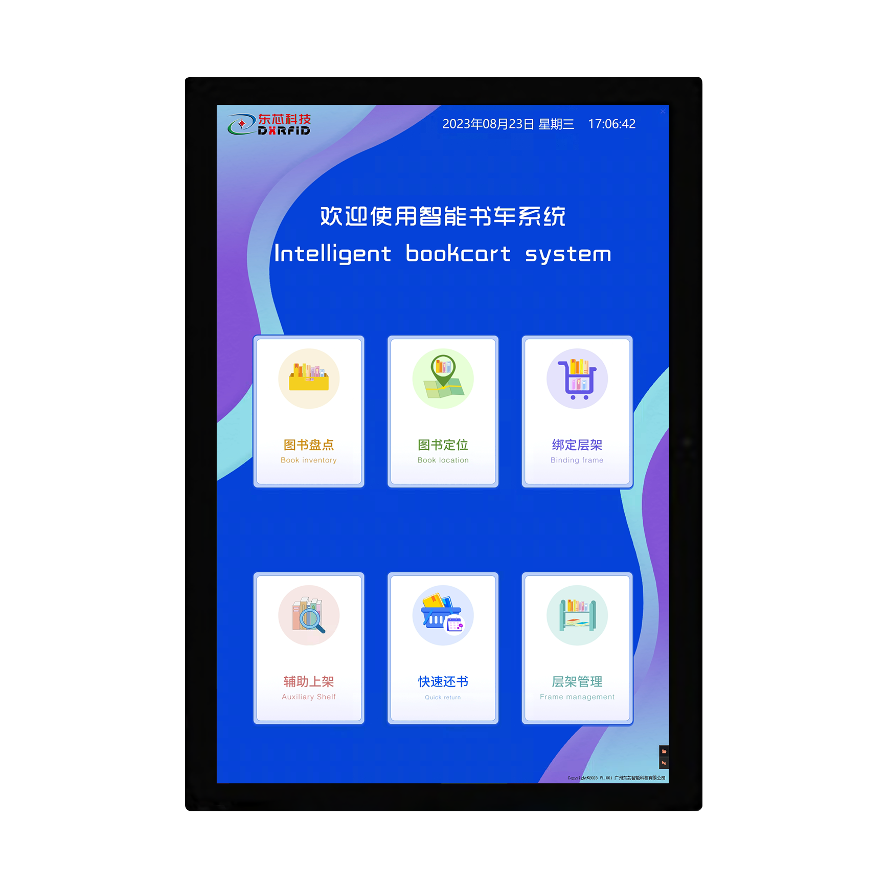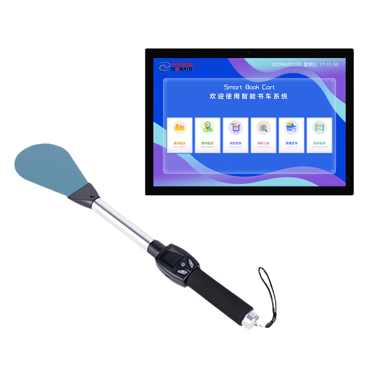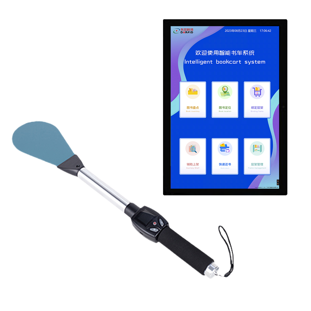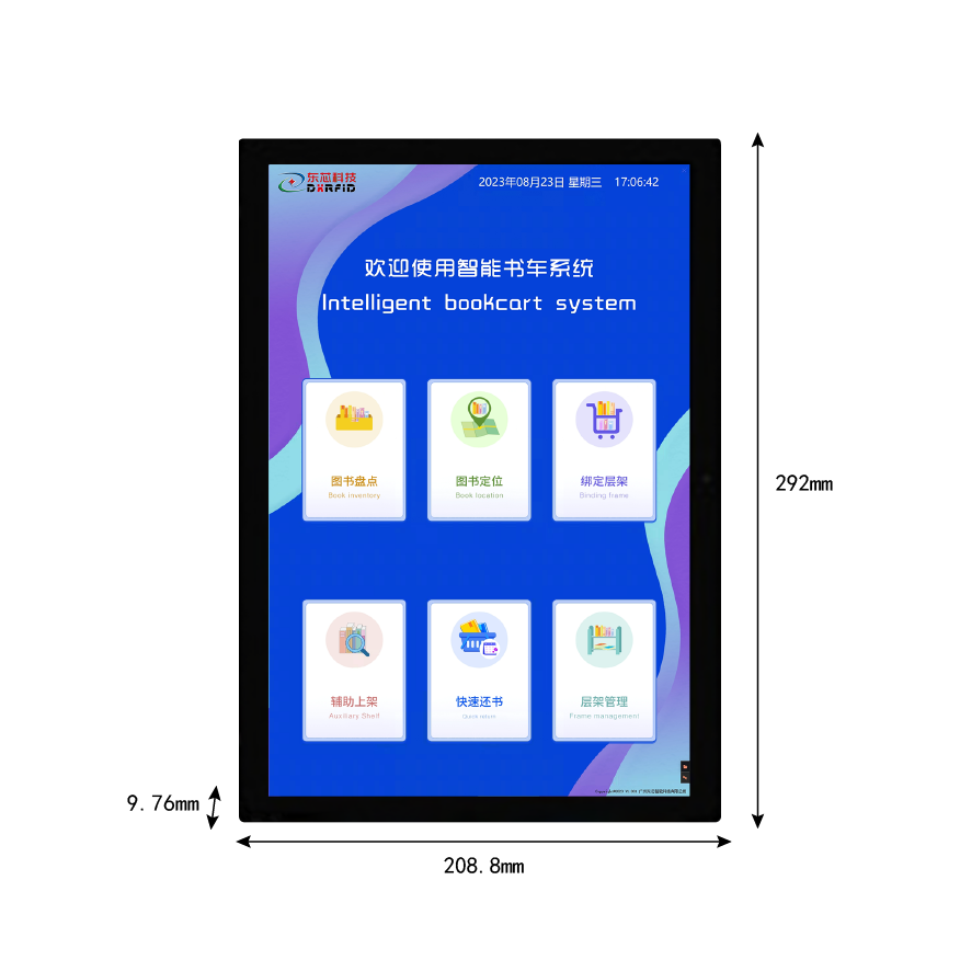 D-SPY-PAN是馆藏书籍管理的新型 RFID 智能化设备,21.5 寸触摸显示屏,简单易操作的人 机交互界面。它可以辅助工作人员对图书馆新书入馆、上架、层架变更、书籍盘点等,有效的提高馆藏精准化、 实时化和高效化。本产品可选配搭载读写器一体机,或者多通道读写器和 ABS 智能书架天线组合,通过快速 还书功能实现高效还书。本产品广泛应用于公共图 书馆、中小学图书馆、档案管理等。