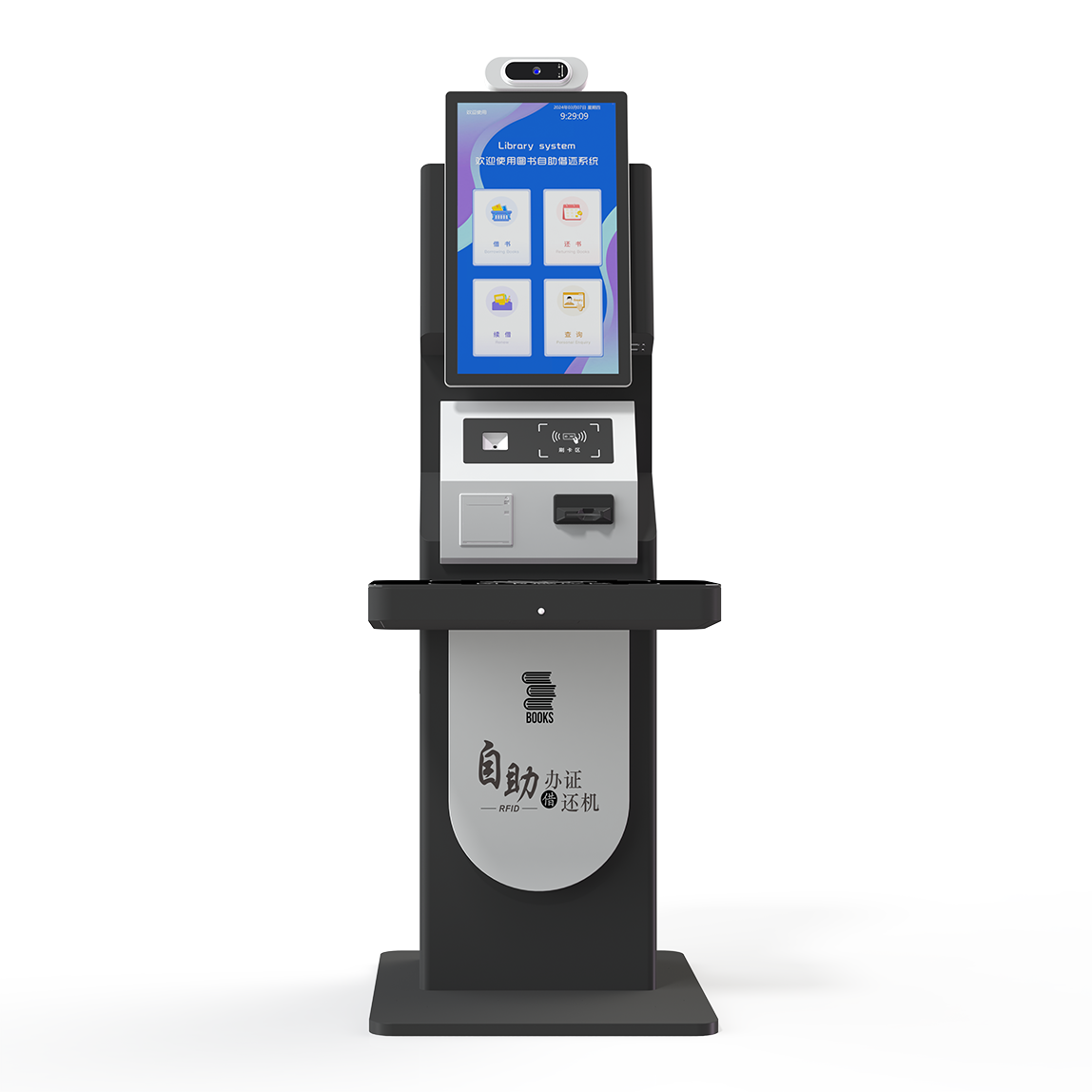 DJHJ43自助办证借还一体机,可感应识别粘贴有RFID标签的图书、并操作借还处理、也能让读者自助办理读者证的智能化设备。支持高频(HF)和超高频(UHF)两种频段。配备21.5寸/32寸或43寸触摸显示屏和简单操作的人机交流界面、图形界面,可选人脸识别、身份证、二维码、微信、支付宝、读者证等多种身份验证。由读者自助借还馆内书籍资料;帮助图书馆在有限的人力资源条件下,增进图书流通速率、简化借还流程,便利读者快速准确的完成借还,进而提高图书馆从业人员工作效率及服务品质。本产品广泛应用于智慧图书馆、档案、物资管理等领域。
