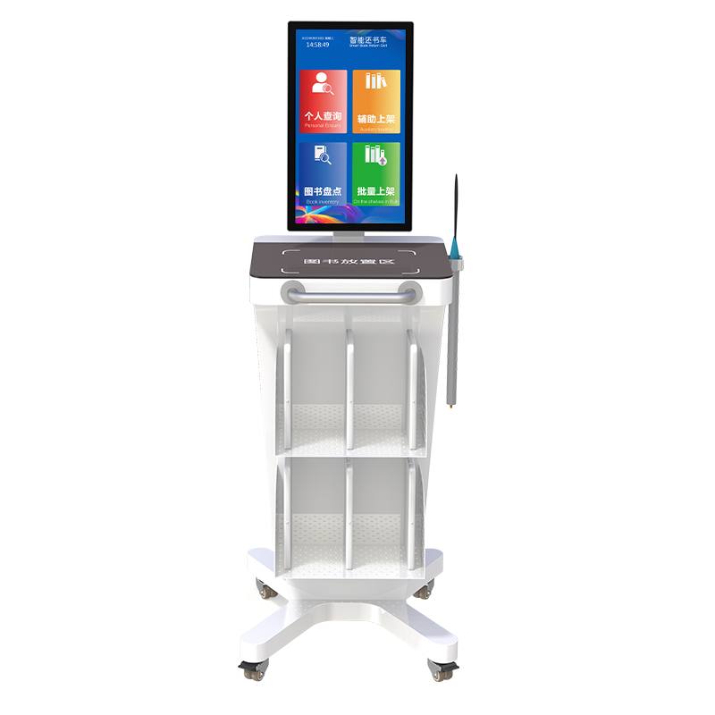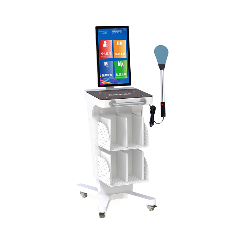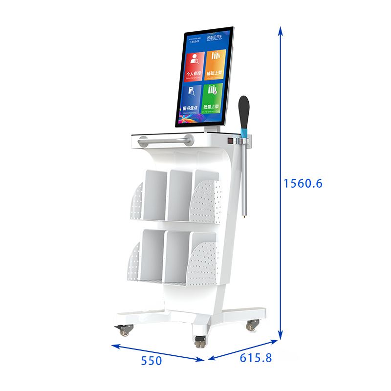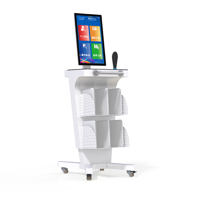 DPDC215 智能盘点车是馆藏书籍管理的新型 RFID 智能化设备,配备 21.5 寸触摸显示屏,简单易操作的人机交互界面。它可以辅助工作人员对图书馆新书入馆、上架、层架变更、书籍盘点等,有效的提高馆藏精准化、实时化和高效化。本产品可选配搭载读写器一体机,或者多通道读写器和 ABS 智能书架天线组合,通过快速还书功能实现高效还书。车主要功能:快速还书、辅助上架、图书盘点、批量上架。本产品广泛应用于公共图书馆、中小学图书馆、档案管理等。