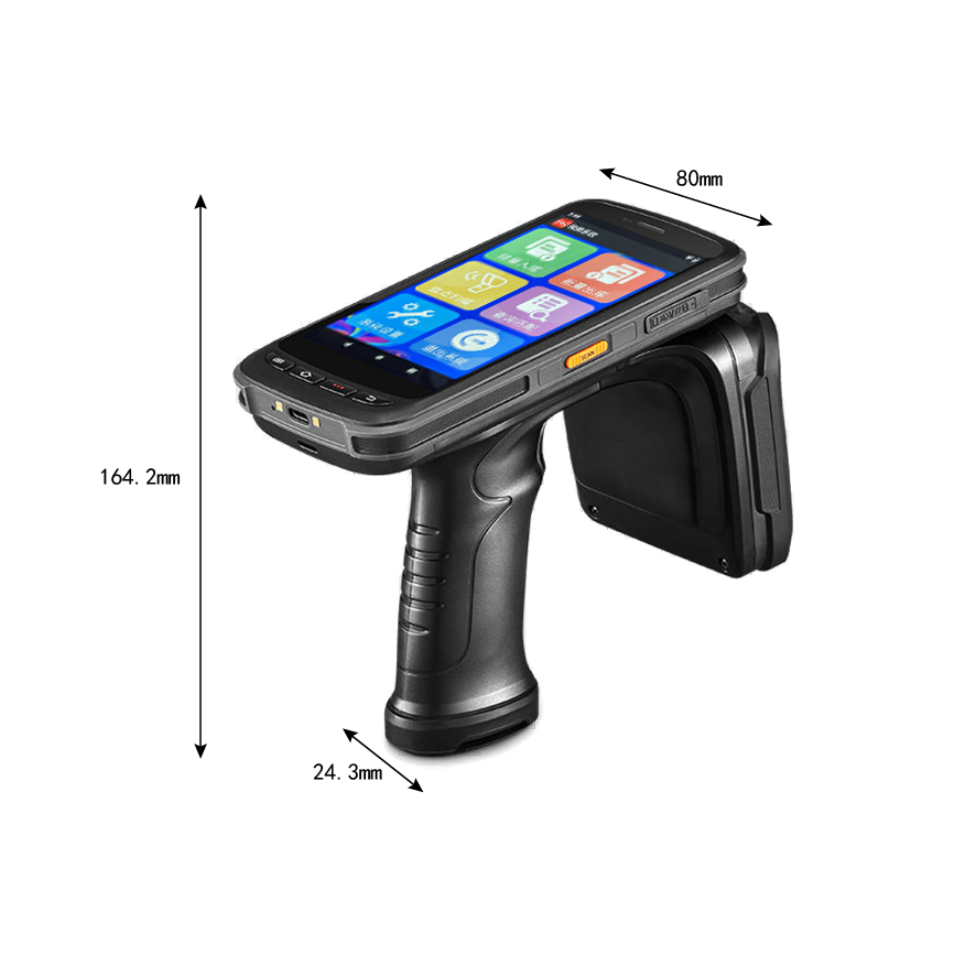 该款设备是研发升级的一款高性能超高频智能手持终端。其融合了强大的UHF超高频读写功能,具有更出色的灵敏度,有助于实现更精准、更快速的数据采集。采用Android操作系统,搭载高性能处理器,拥有超长的电池续航能力,采用基于Impinj E710 / R2000芯片的自主研发超高频模块,数据采集精准快速,且读取范围广,室外空旷环境读距超过15米。同时支持选配条码功能,采用八核处理器,功能多样,配置齐全。并且,拥有高达8000mAh的大容量电池,完美适应高强度数据采集应用需求,广泛适用于资产管理、服装盘点、车辆管理、高速收费、仓储管理、金融管理等领域。