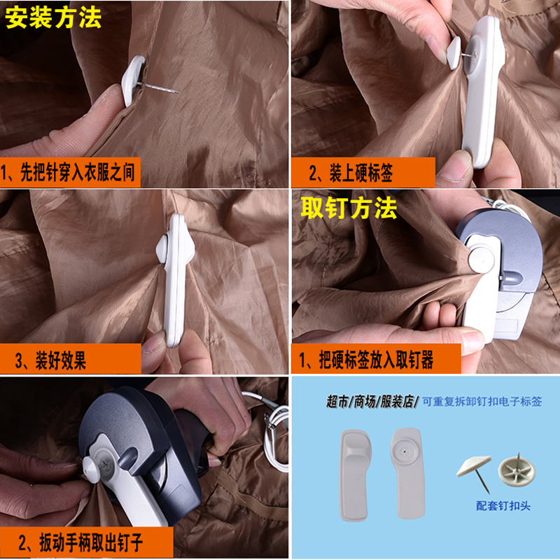 RFID钉扣电子标签,采用ABS外壳材质封装,内置UHF超高频6C 可拆卸重复利用防盗盘点-915MHz 钉扣电子标签,解决了现有技术中的电子标签存在不可拆卸性、不可回收性、不可多次使用性、开锁不费时费力、采购成本高的问题,识别距离远。并可定制不同频率、不同协议、不同型号的电子标签标签芯片。标签具有灵敏度的读写性能及快速防碰撞处理算法,读取标签速度高达50张/秒。符合大多数RFID工业应用集成项目,如生产过程自动化管理、洗衣厂自动化管理、药品跟踪、图书档案管理。产品采用铝合金外壳封装,可防碰撞,防重压,可在恶劣环境下使用。